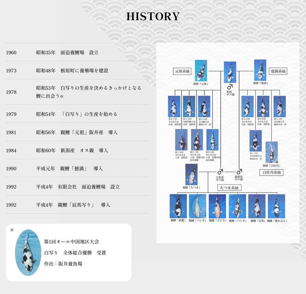 จากธุรกิจจำหน่ายปลาคาร์ฟ Omosako ค่อยๆ พัฒนาสู่การเป็นฟาร์มเพาะพันธุ์ โดยเริ่มต้นจากการพัฒนาสายพันธุ์ Shiro Utsuri ซึ่งกลายเป็นเอกลักษณ์ของฟาร์มในเวลาต่อมา